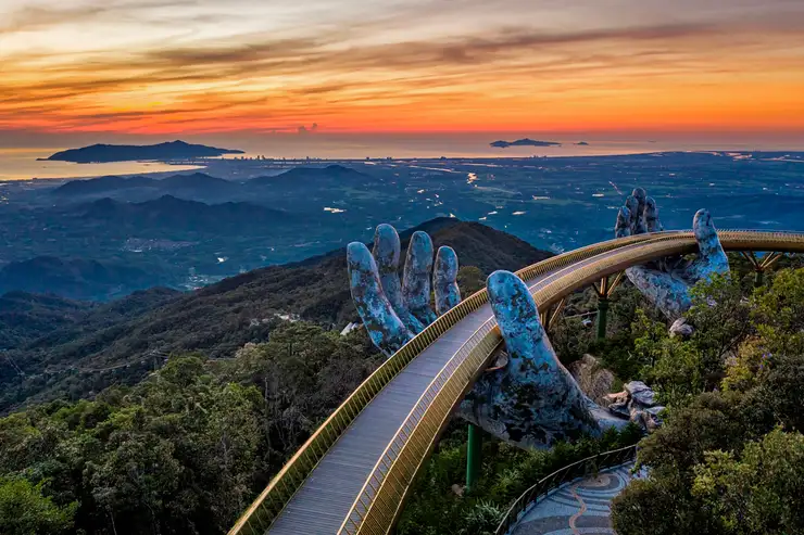Khi chiếc cáp treo bắt đầu rời khỏi mặt đất, tấm vé Bà Nà Hill sẽ đưa bạn xuyên qua những cánh rừng nguyên sinh để đến với một vương quốc mang đậm hơi thở Châu Âu trung cổ. Ngay khi đặt chân đến đỉnh núi, bạn sẽ bị choáng ngợp bởi Cầu Vàng, dải lụa vàng lấp lánh được nâng đỡ bởi đôi bàn tay khổng lồ rêu phong. Đứng ở đây, giữa làn mây mờ ảo và không khí se lạnh, bạn sẽ hiểu vì sao nơi này được mệnh danh là thiên đường của những giấc mơ, nơi mọi khoảng cách giữa con người và thiên nhiên như bị xóa nhòa.